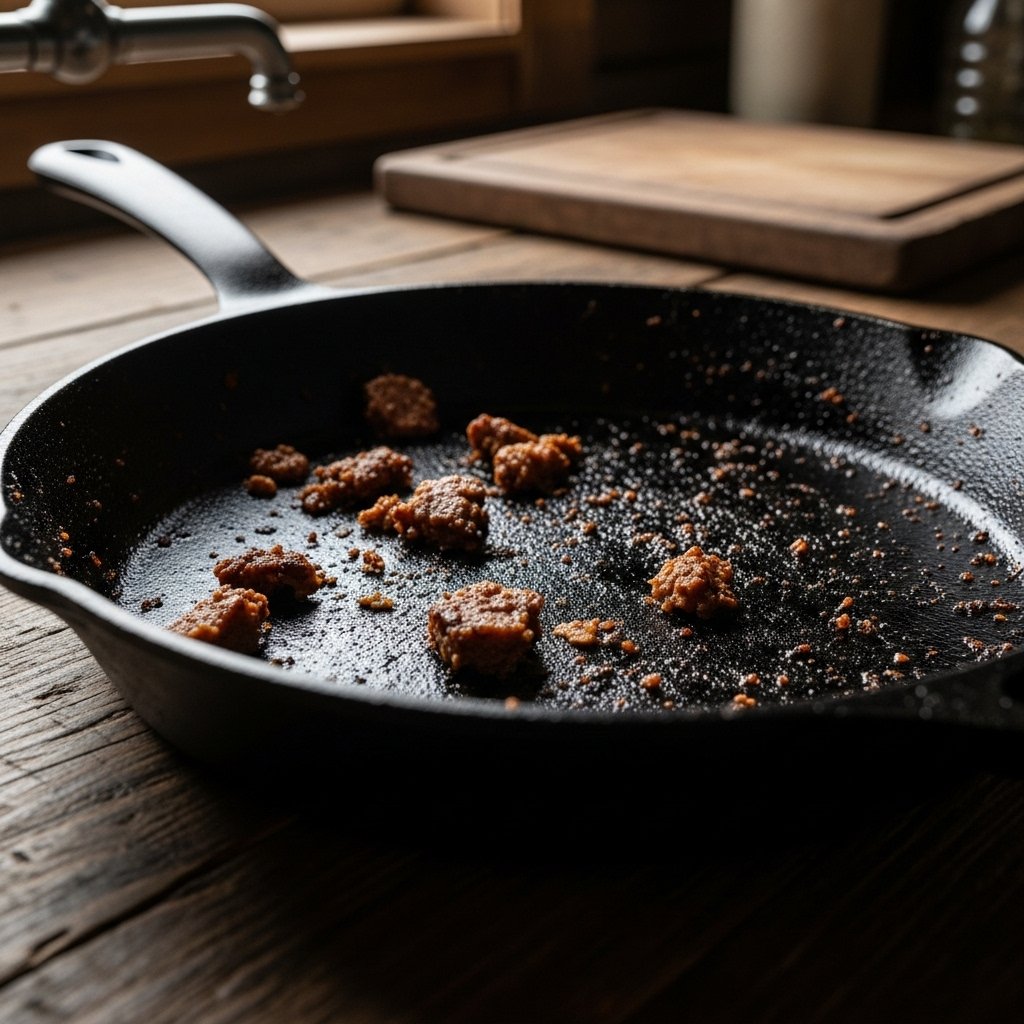 This is a classic kitchen rule. Cast iron pans allow food to slide off their surface because their seasoned top layer contains polymerized oil. The dish soap product eliminates oils which leads to the removal of all your prepared seasoning from the pan.