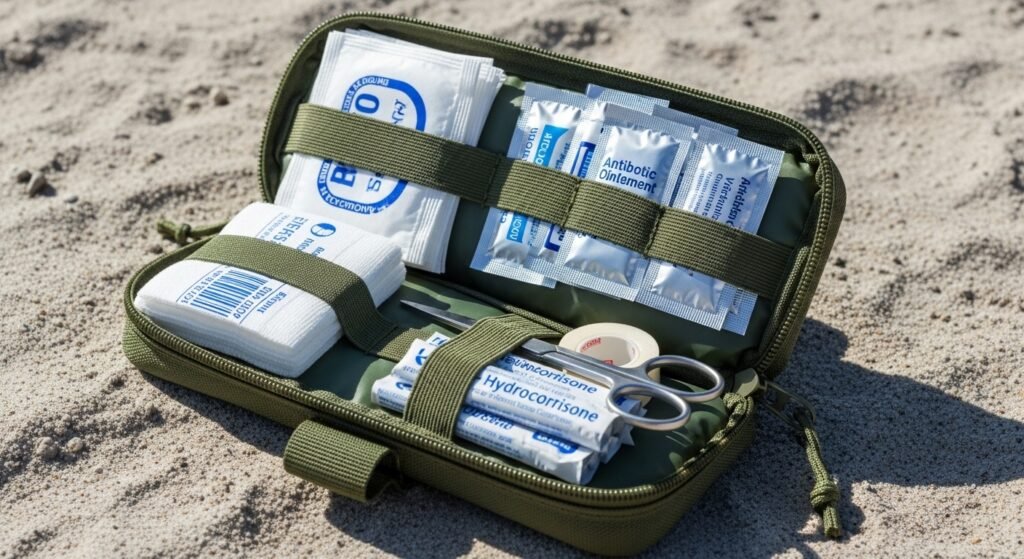 You should pack a small pouch with essential items which include waterproof bandages, hand sanitizer and anti-itch cream for bug bites and jellyfish stings. The availability of these items will prevent you from needing to visit the lifeguard station while also stopping minor cuts from interfering with your afternoon activities.