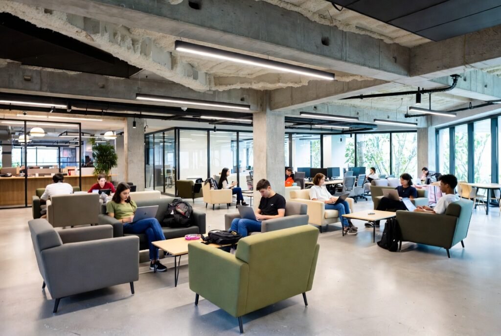 Gen Z pressed companies to change their workspaces. They love the office as a social and creative place. It should include lounges, nice coffee, and wellness rooms. Instead of the dreary grey office, the talk has shifted to one that feels like a vibrant kind of hospitality.