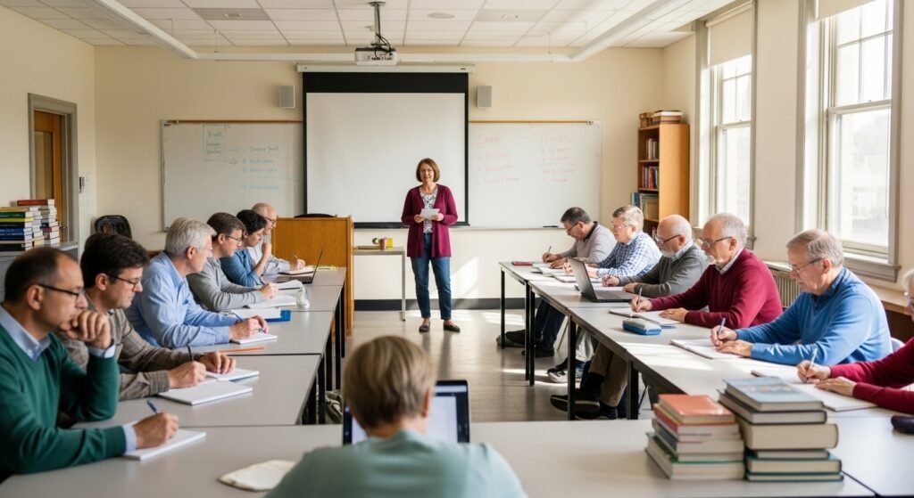 Retirees can also pursue a lifetime of learning by attending classes at universities and community learning centers; the classes are free or very cheap.