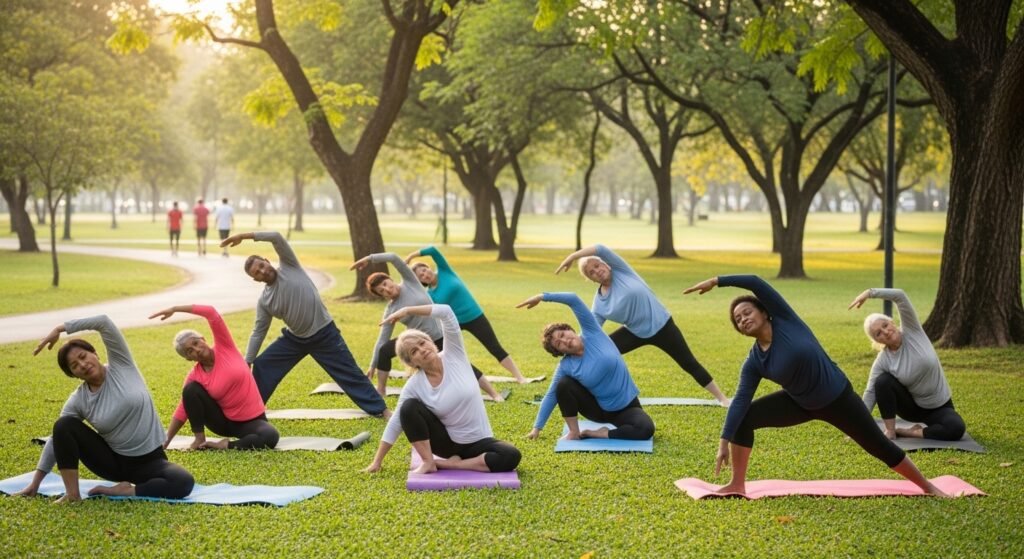Particularly, some community centers and parks offer free yoga sessions, walking, or light exercise classes targeted at older adults.