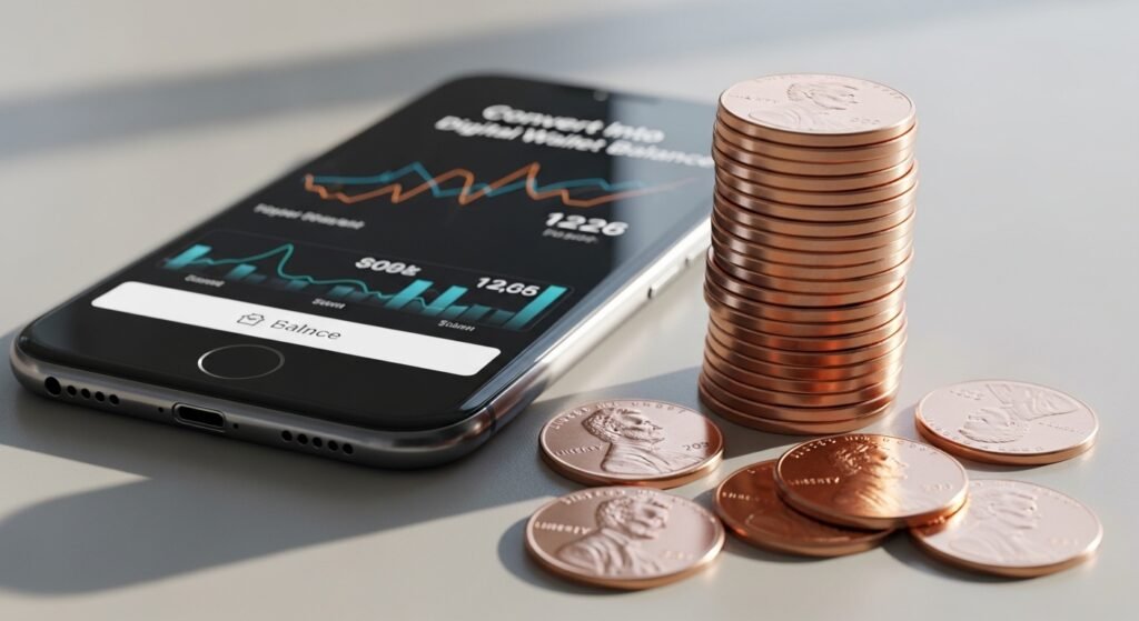 Banks and coin machines provide services which permit customers to use their loose change. The conversion of pennies into cash or digital value enables customers to spend or save their money.